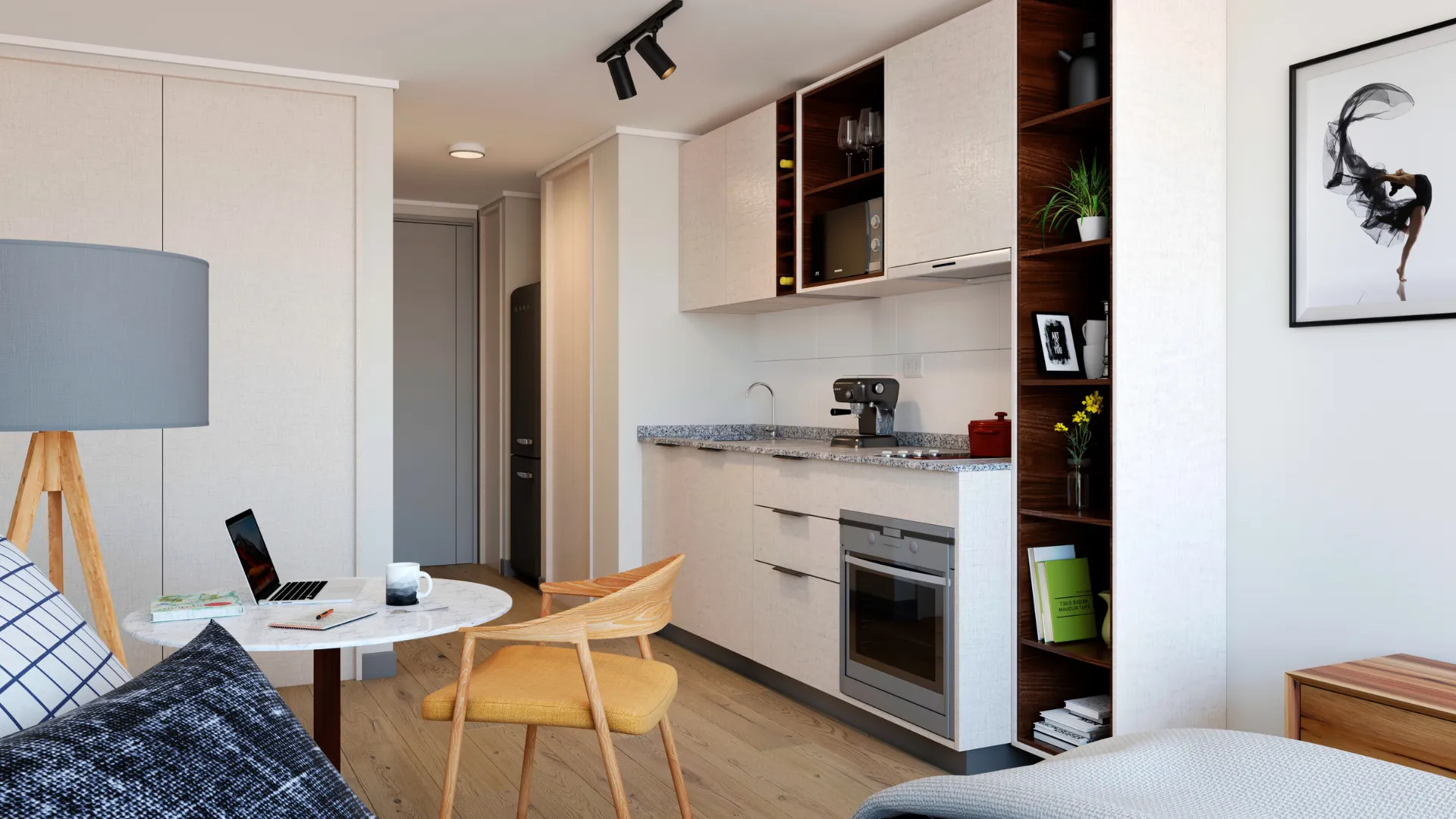 Tipologías: Estudios, 1 y 2 dormitorios, con metrajes amplios y diseño de autor Enrique Concha & Co.
